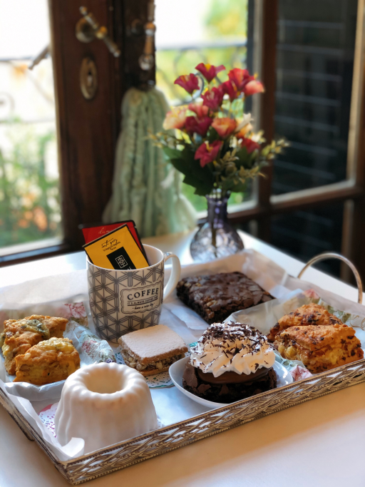 Red Velvet, Brownie con nuez , Budín Individual de limón, Alfajor de limón, 2 Macarons, 2 Saquitos de Té Twinings. Se presenta en Box kraft
